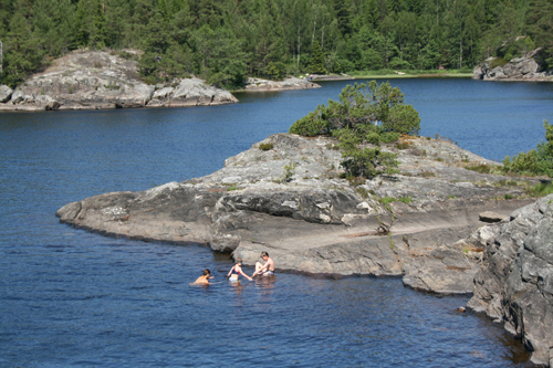 Since I was in college, I’ve always liked canoeing. We went on several canoe trips with all our floormates from Akers Hall, and even after graduation, dispersal and my move to Chicago, we continued to organize weekend-long canoeing trips in Michigan for several years. We’ve only gone a few times since moving to Sweden…the local river is a fairly easy one and we’ve only rediscovered the canoeing bug now that the kids are old enough to paddle as well, and we also have access to the canoes that belong to the local Scout troop, which we’re members of. On Friday, we drove north, nearly to the Norwegian border and rented canoes at the top of Noth Bullare Lake (at least I think that’s which one it was). The day was windy and there were whitecaps on the water, but paddling south with the wind was fine and we rather imprudently didn’t think about the slog it would be to come north again, against it. The sun was sparkling on the water and the mica in the cliffsides.