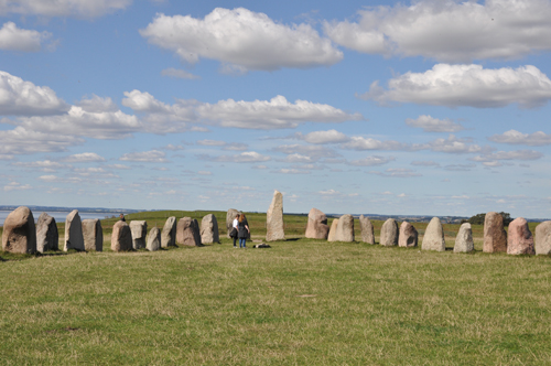 Today was another gorgeous gorgeous day and after I had slept in, and gotten up leisurely and fixed my breakfast, Anders said it seemed a shame to waste the day inside and couldn’t we go somewhere instead? And I agreed, and we drove to the coast and visited Ales Stenar which sits high up on a blustery cliffside overlooking the Baltic Sea and it was a perfectly perfectly beautiful day. The pictures don’t show how many people were actually wandering around up there, in and out of the stones, speaking Italian and German and Swedish. The pictures don’t show the ladybugs that were on several of the rocks. They don’t show the white butterflies that were swooping around on the cliff side or how steep the cliffs were.