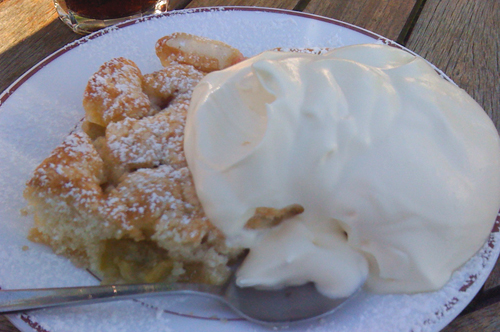 MMMMMMMmmmmmmmmmmmmm pie!! The biggest piece of delicious rhubarb pie buried in heavy cream and dusted with powdered sugar.