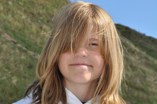 Anders and the kids climbed down the cliff to the rocky beach below, where people have spelled out messages and their names with the round, water-tumbled rocks and sat on the WWII bunker in the sunshine for a bit before climbing back up. They wrote their initials in stone on the top of the bunker: a K in a circle of rocks, a big M E. I sat in the sunshine at the top, on the grassy rolling edge and looked out over the ocean. All I could see was blue. Blue sky, blue water. A seagull from above. More butterflies.