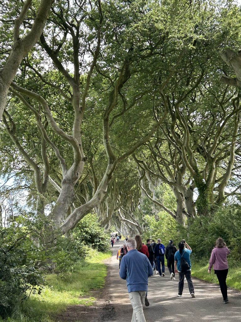 Our final stop was at the Dark Hedges, a beautiful avenue of serpentine beech trees planted by the Stuart family in the 18th century as an impressive feature of the driveway to their Gracehill Manor. It was also a filming location for Game of Thrones. They did some nice CGI work as the entire avenue is actually paved, and normally FULL of people walking its length.