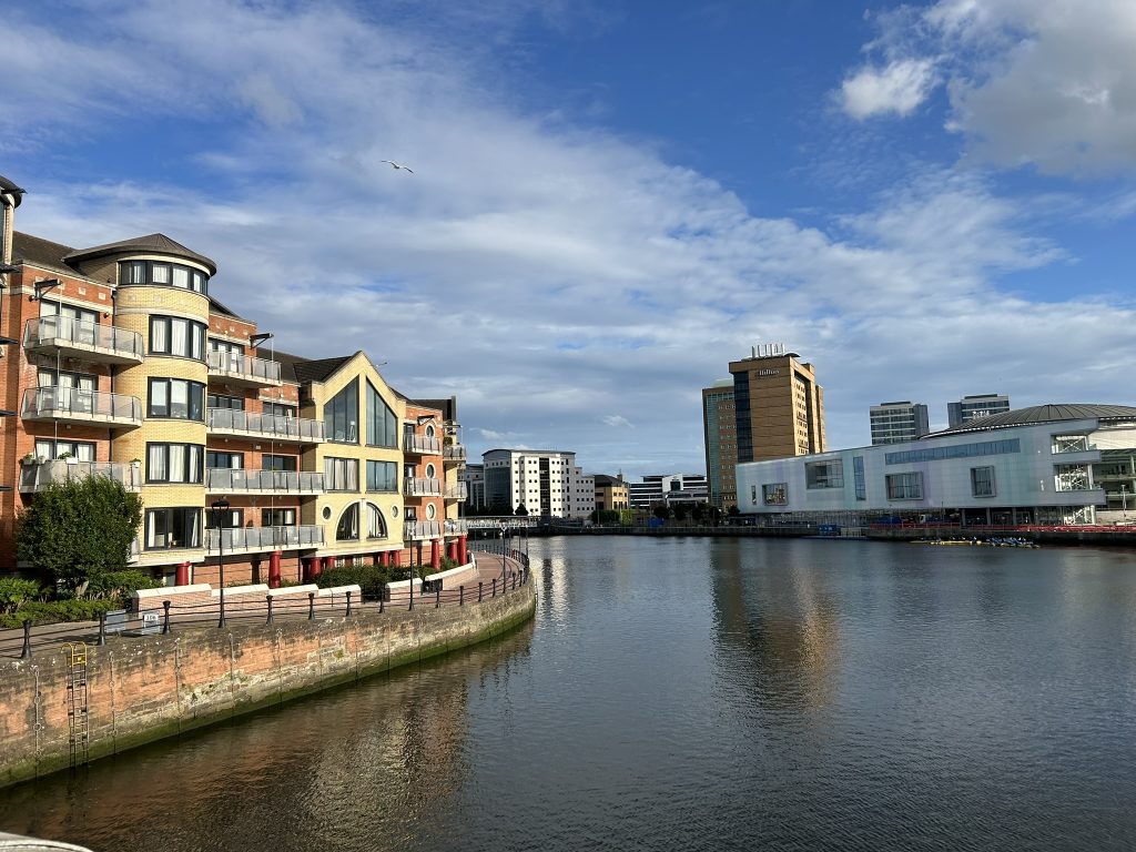 Skinny building along the canal in Belfast
