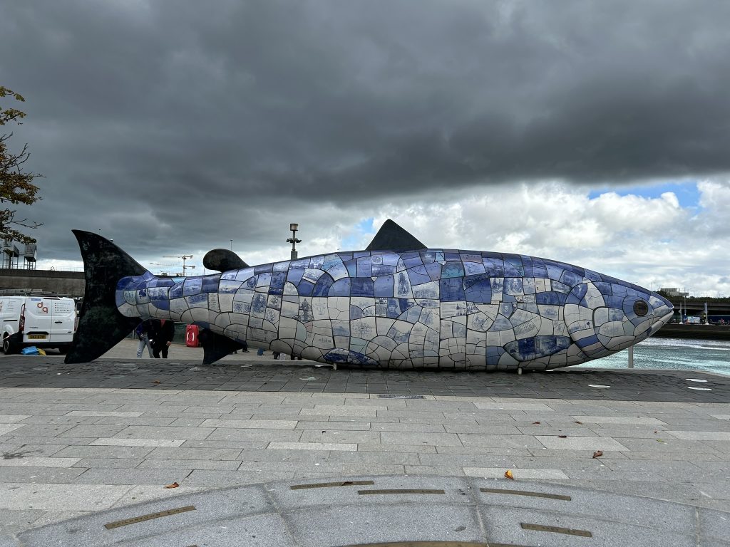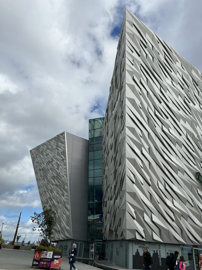 We got back in the late afternoon, and after a rest went for Italian for dinner in town. I thought Belfast was a very pretty city, with a nice mix of old and modern buildings. The next morning we visited Titanic Belfast, a huge museum dedicated to the story of the most famous maritime disaster in history. It was very thorough, taking you through the history of Belfast, its shipyards, the building and fitting of the Titanic, and the story of its sinking and aftermath. We had lunch in one of the restaurants and then stopped at the “Salmon of Knowledge” (otherwise known as the Big Fish) on the way to the bus station. Legend has it that kissing it on the lips imparts wisdom to you :I