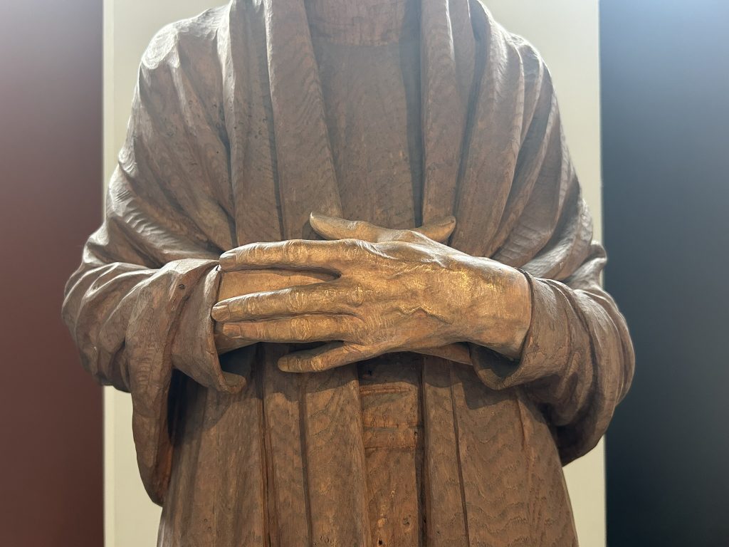 After lunch and some quality sit-and-chat time, we headed back upstairs for the Gauguin exhibition, which was actually titled Gauguin & Kihara – First Impressions. The first room showed a video of a panel of Samoan artists gathered by Yuki Kihara, talking about several of his paintings and their place in the Tahitian culture both then and now. Past that was a large room filled with his paintings and sculptures, as well as lots of info about his life. This painting, Landscape from Brittany with Breton Women, was the only one I really liked (note: cow), though I was taken by some of the wood sculptures that I hadn’t previously seen or read about.